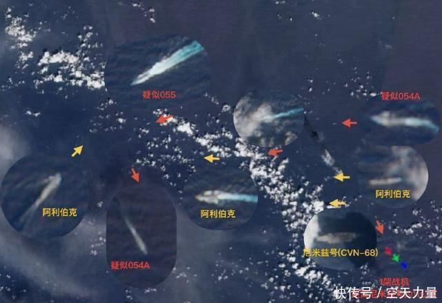 【卫星拍下的055带队驱离美航母舰队画面】