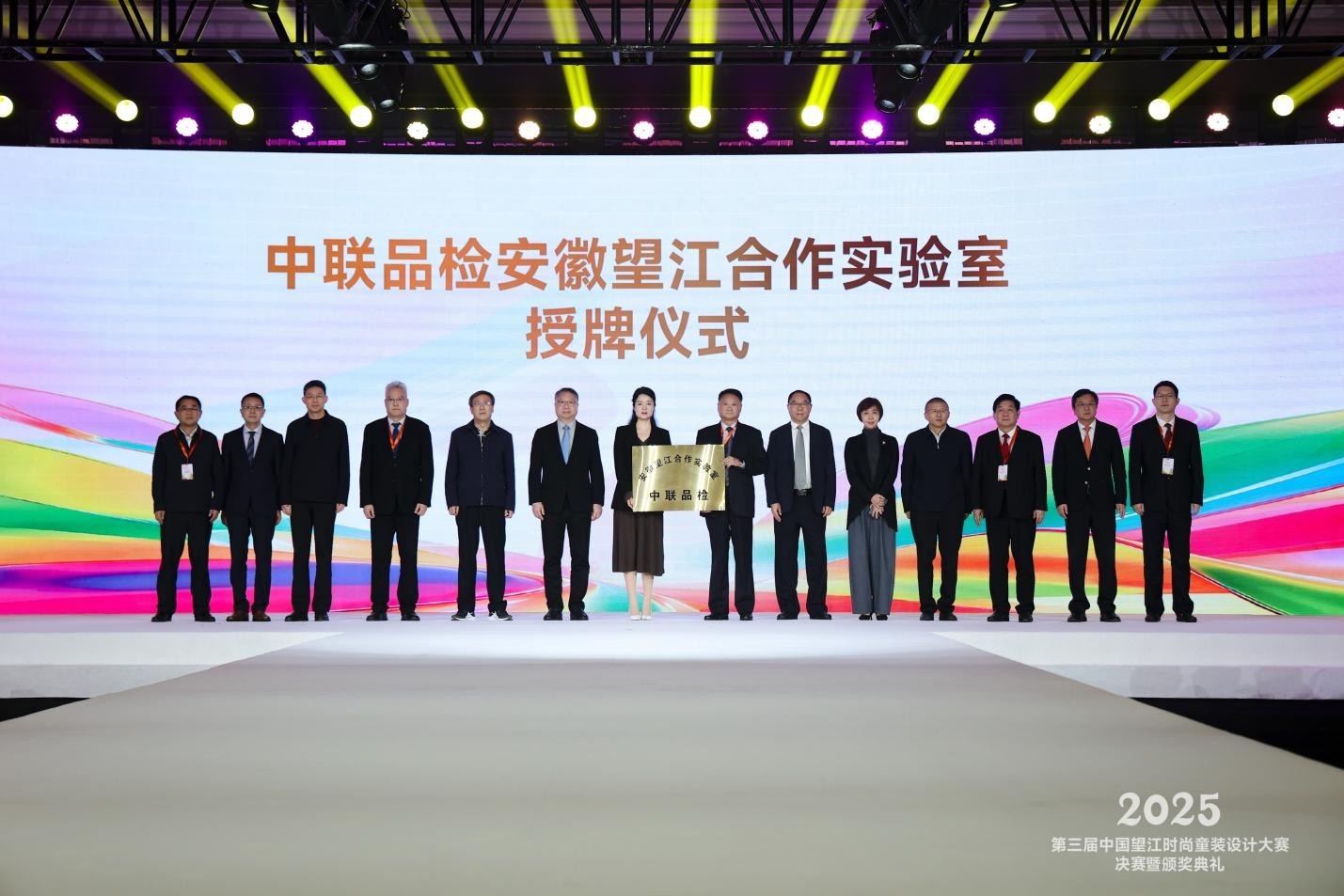 在不断深化产赛融合的进程中,望江童装产业正迈入协同发展的新阶段。作为本届活动的重要环节,“中联品检安徽望江合作实验室”授牌仪式在典礼现场隆重举行。童装不仅关乎童年的美好想象,更承载着儿童健康与安全的责任。产品质量与检测标准,是守护这份纯真的第一道防线。活动现场,授牌方代表为中联品检(北京)技术集团有限公司董事谢凡,接牌方代表为望江县政府党组成员王绍东。孙瑞哲、阎岩、刘家强、胡松、李波、章松、查汉斌、章洪海、杨林、汪久清、李木林、朱显璋等嘉宾共同见证了这一仪式。