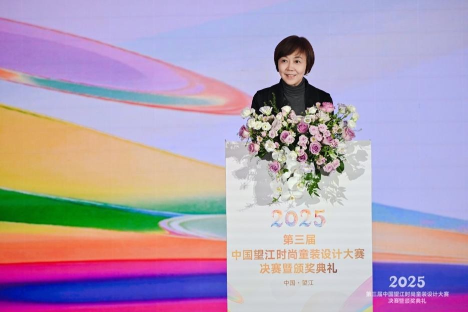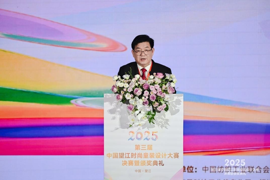 中国纺织工业联合会副会长阎岩在致辞中表示,三年来,中国望江时尚童装设计大赛已成为产业创新的亮眼名片。以赛为媒、以创为桥,大赛在促进设计成果落地、推动人才培育与产业融合方面取得了显著成效,逐步形成了“设计—展示—交流—合作”的良性机制,让创意真正走进生产与市场,成为望江童装产业高质量发展的新引擎。她指出,当前中国童装产业正处于转型升级的关键期,设计已成为连接文化与科技、决定品牌竞争力与产业格局的核心力量。望江依托坚实的制造基础和集群优势,将设计创新作为产业升级的核心引擎,通过赛事平台持续激发原创活力,推动创意设计与制造实践的深度融合,构建起设计驱动、供应链协同与品牌共生的现代童装产业体系。她强调,未来望江童装产业应持续强化设计创新、优化供应链协同、深耕品牌文化,以创新之笔绘就产业新图景,以设计之光照亮中国童装的未来。