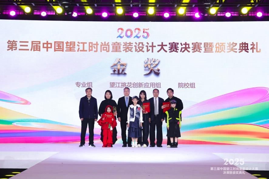 11月2日晚,秋意融融、光影流转,2025第三届中国望江时尚童装设计大赛决赛暨颁奖典礼在安徽望江县国际大酒店盛大举行。作为国内童装设计领域最具影响力的专业赛事之一,本届大赛以“逐光”为主题,寓意以设计为光、以创新为翼,汇聚全国新锐设计力量,以一场凝聚梦想与创意的童装盛宴,照亮中国原创设计的崭新篇章。16组入围佳作以丰富的文化语汇和前瞻的设计语言,展开一场童装美学与创新思维的时尚竞演。选手吴双、吴鹏鹏的作品《向野而生》,王瑶的作品《时光机》,张霖的作品《年味儿》分别夺得本届大赛专业组、院校组、望江挑花创新应用组的金奖。他们以卓越的创意实力与非凡的设计表达,向业界与大众展示了中国新生代童装设计师的无限热忱与蓬勃力量。